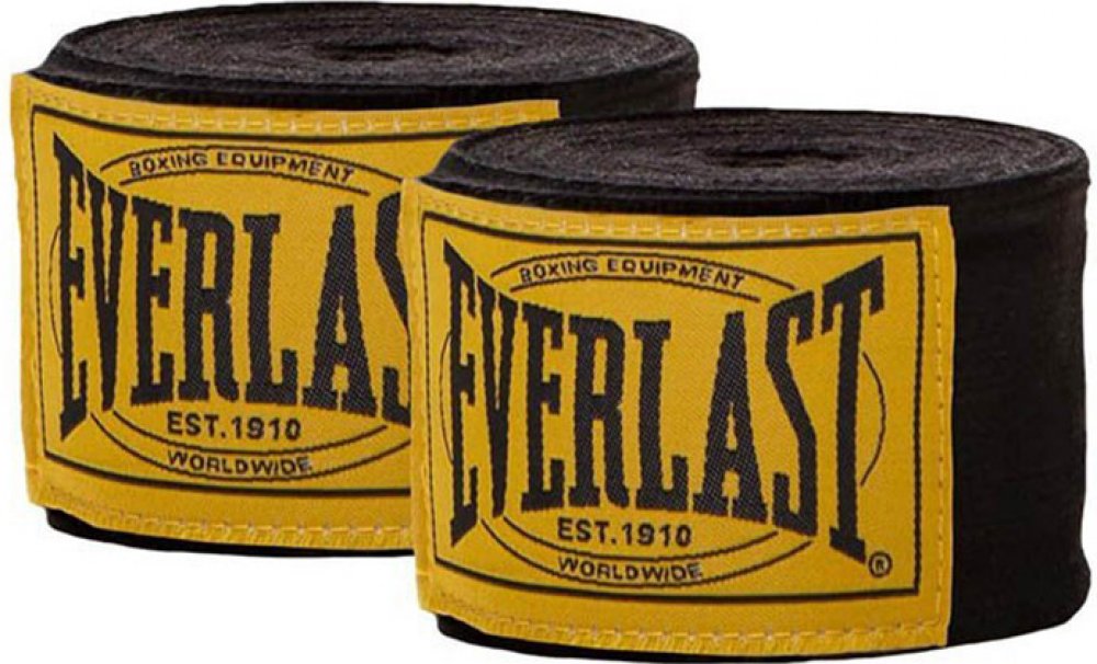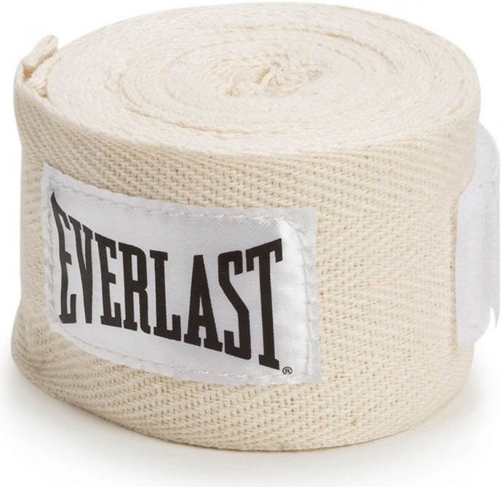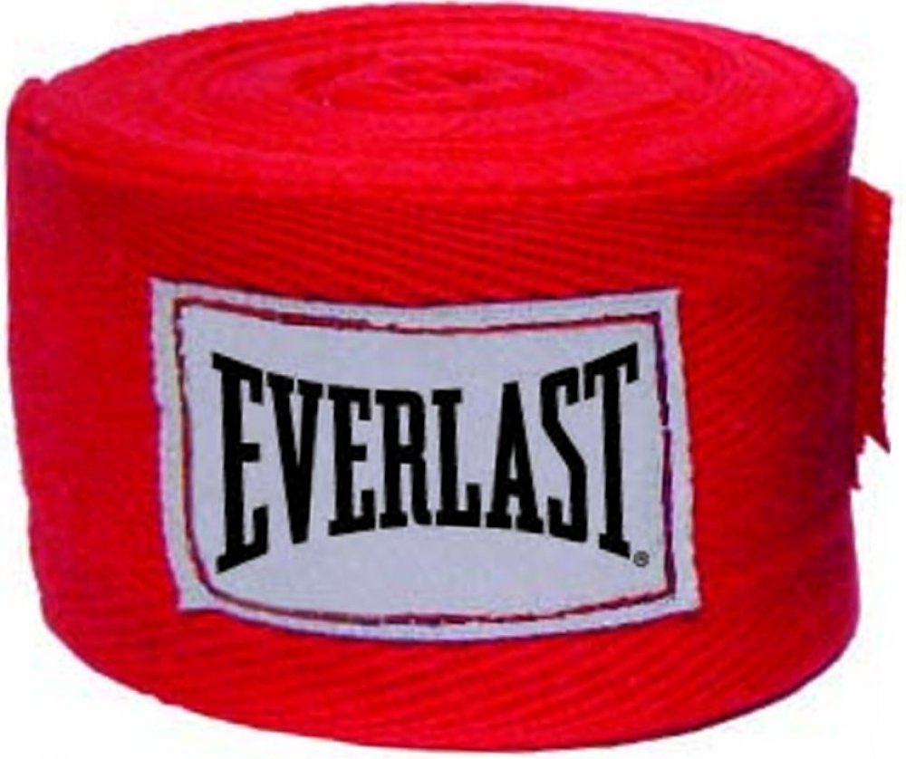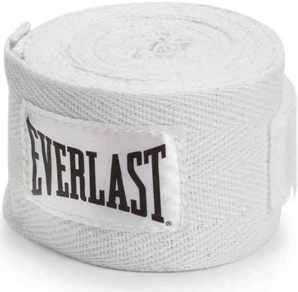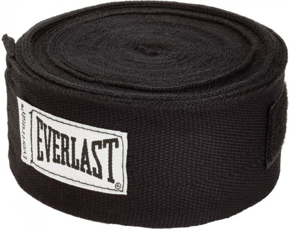 Bandáže Everlast - poloelastické 3m. Vyrobené pro maximální ochranu. Po navázání bandáží se již může nasazovat na ruku rukavice. Délka každé bandáže je 3m, šířka 5cm. Tyto bandáže jsou vyrobeny z bavlny a spandexu. Jsou tedy částečně pružné (poloelastické). Dokonale zpevňují celou oblast ruky a především zápěstí. Bandáže obsahují dlouhý suchý zip pro bezpečné zapnutí, který je 12cm dlouhý. Na konce bandáže je poutko, které se zachytí na palci. Prodávají se v páru. Váha bandáží i s obalem je 110 gramů. Bandáže lze prát klasickým způsobem v pračce. Každá bandáž je u suchého zipu opatřena nášivkou Everlast.