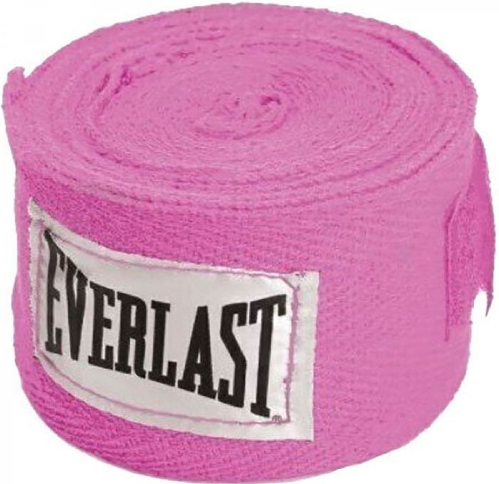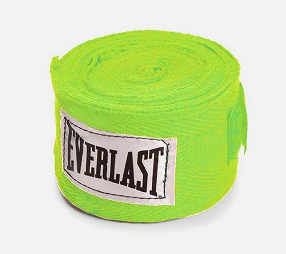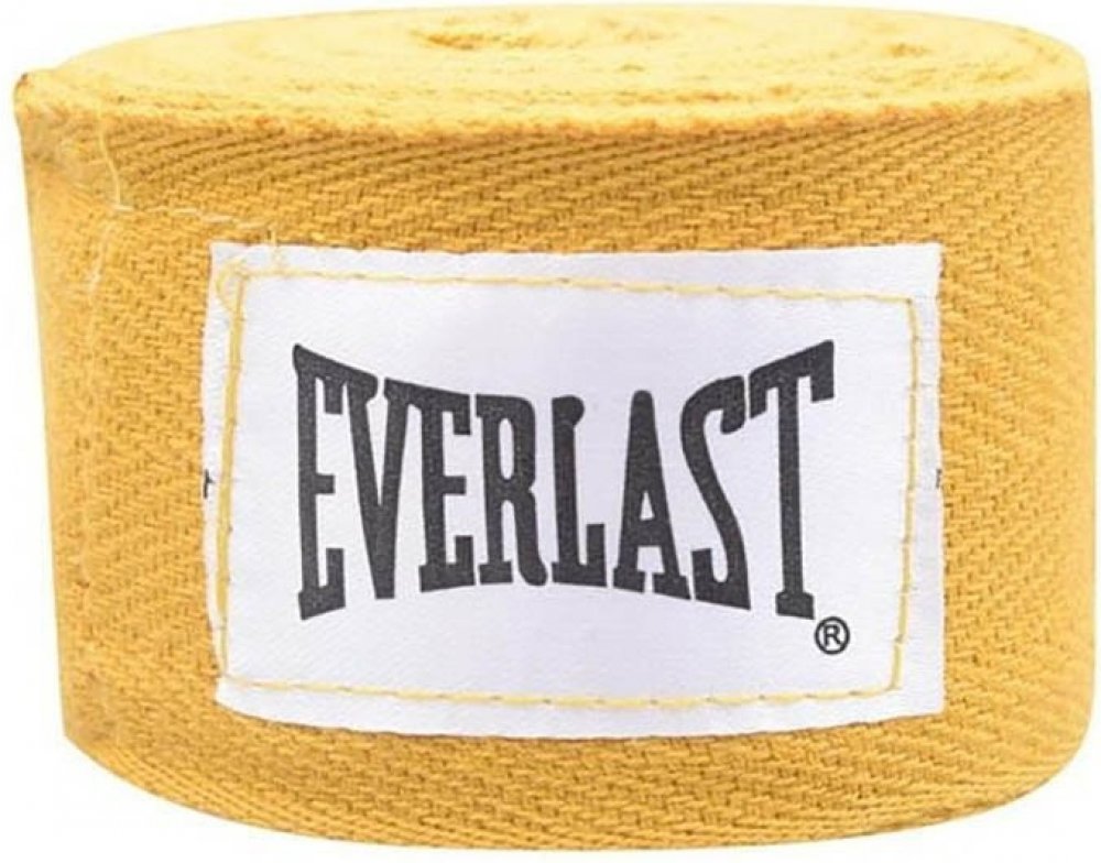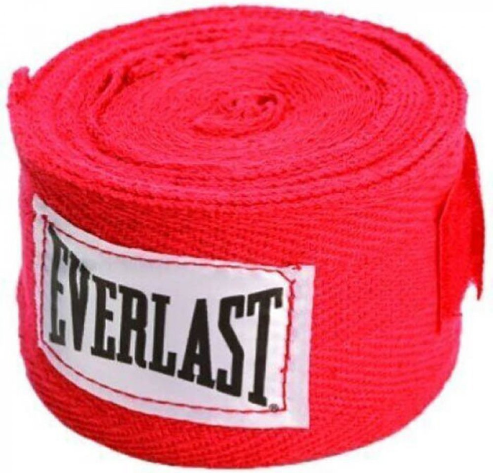 Bandáže Everlast - poloelastické 3m. Vyrobené pro maximální ochranu. Po navázání bandáží se již může nasazovat na ruku rukavice. Délka každé bandáže je 3m, šířka 5cm. Tyto bandáže jsou vyrobeny z bavlny a spandexu. Jsou tedy částečně pružné (poloelastické). Dokonale zpevňují celou oblast ruky a především zápěstí. Bandáže obsahují dlouhý suchý zip pro bezpečné zapnutí, který je 12cm dlouhý. Na konce bandáže je poutko, které se zachytí na palci. Prodávají se v páru. Váha bandáží i s obalem je 110 gramů. Bandáže lze prát klasickým způsobem v pračce. Každá bandáž je u suchého zipu opatřena nášivkou Everlast.