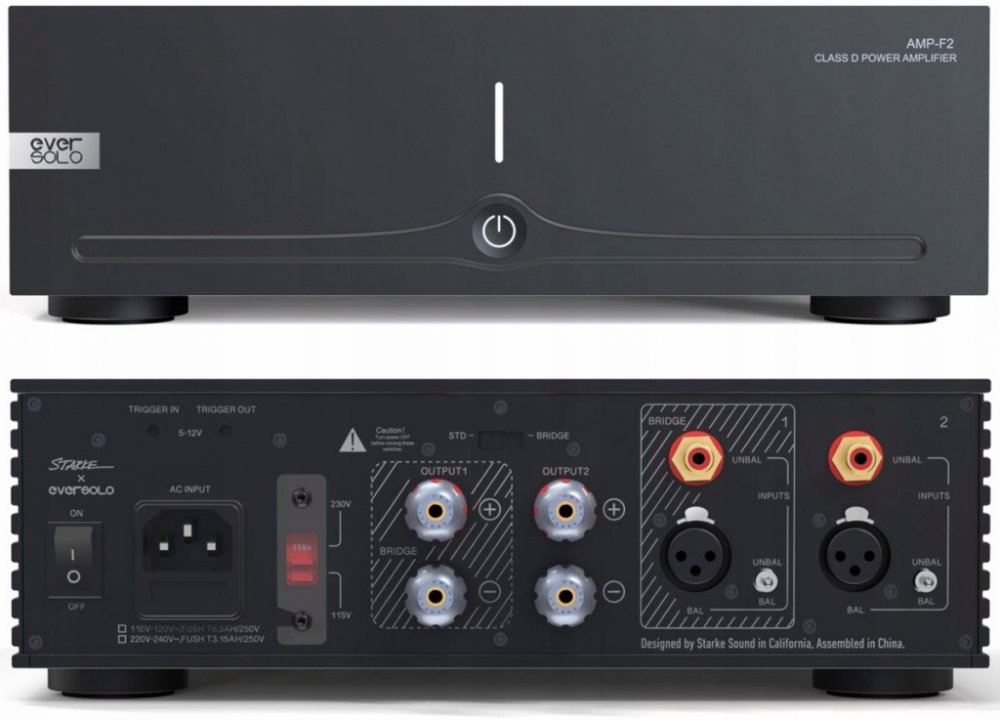 AMP-F2, vyvinutý ve spolupráci mezi týmem Starke Sound a EverSolo, je založen na inovativním modulu NS600 vytvořeném týmem Starke Sound. Vyznačuje se vysokou vzorkovací frekvencí až 600 kHz. Současně výrazně snižuje hluk a zvyšuje dynamický výkon díky nově navrženému napájecímu zdroji SAPS, který je speciálně navržen pro audio. Zesilovač třídy D ve spojení s optimalizovanými obvody pro maximalizaci kvality zvuku.