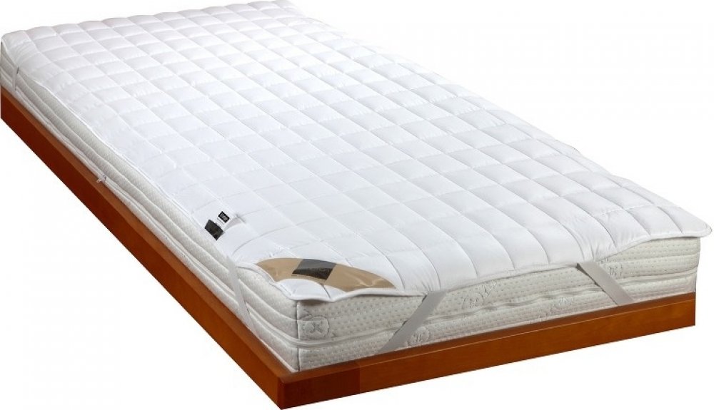 Stálost rovnoměrného rozložení náplně, která tím zajišťuje stejnoměrnou hřejivost a zateplení celého lůžka, je dosahována správným ergonomickým proševem. V rozích je výrobek opatřen elastickými úchytkami pro upevnění na matraci.