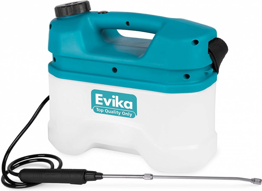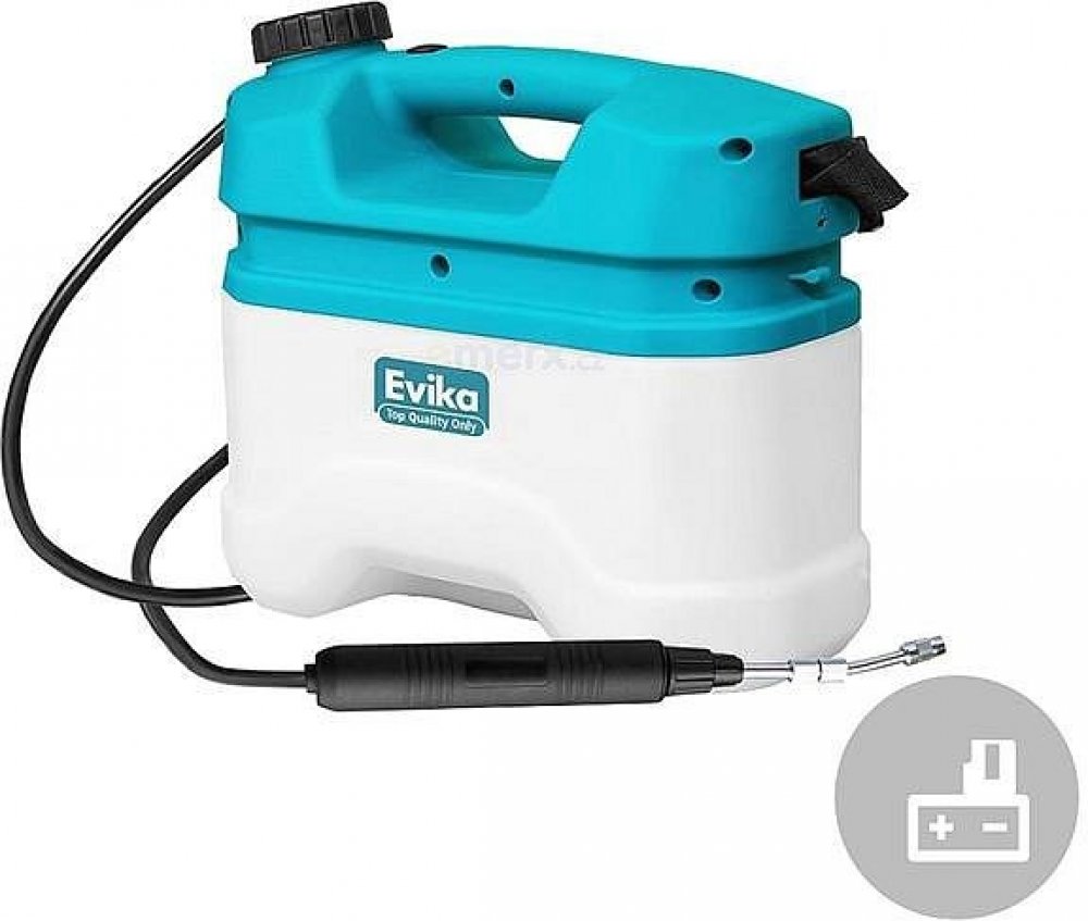 Lehký, kompaktní a výkonný akumulátorový postřikovač EVIKA je určen k rozstřikování zemědělských a zahradních chemikálií, které slouží k boji se škodlivým hmyzem a plevelem. Akumulátorový postřikovač je vynikající alternativou k ručním nebo benzinovým postřikovačům. Můžete jej jednoduše a pohodlně použít doma ve vlastní zahrádce ale i ve velkých zahradách s okrasnými či užitkovými rostlinami. Díky vestavěné baterii umožňuje práci na místech bez přístupu k elektrické síti. Akumulátorový postřikovač umožňuje výrazné snížení námahy při provozu a získání vyšší účinnosti než v případě ručních postřikovačů.Jednou z největších výhod postřikovače je nízká hmotnost, pouhých 2,2 kg, takže při jeho používání se příliš neunavíte. Objem nádrže na postřik je 5 litrů, přičemž doba provozu je 150 min. Má komfortní popruh a teleskopickou rukojeť, která má délku 26 – 42,5 cm. Nabíjí se přiloženým USB kabelem, adaptér není v balení.