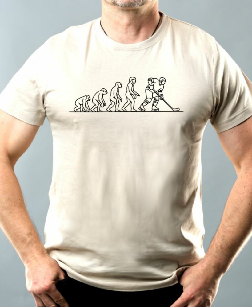 Evoluce hokejista, černý tisk.Přeskočte miliony let evoluce a rovnou na led.Tričko, tílko, mikina, kšiltovka, zástěra, hrnek, hrneček, půllitr, plechový hrnek