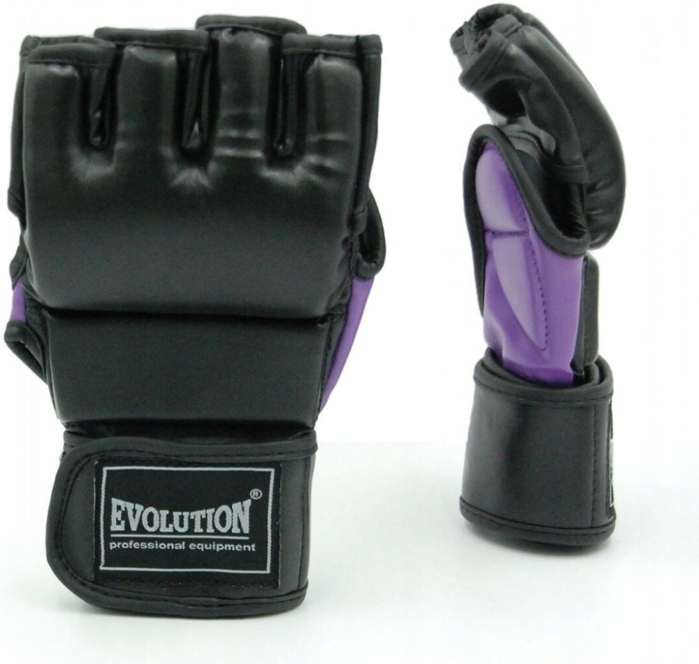 Originální úchopové rukavice pro bojové MMA značky Evolution. Rukavice s klasickou konstrukcí, která umožňuje univerzální použití v bojích Krav Magi, Kickboxu (kick-boxu) nebo boxu. Otevřený palec umožňuje zachovat požadovanou přilnavost a použití dodatečné vnější ochrany poskytuje závodníkovi pohodlí a chrání před zraněním a oděrkami.
