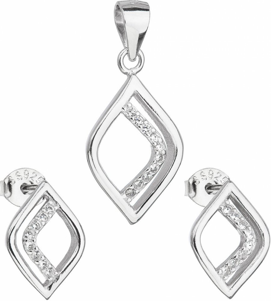 Sada šperků 19014.1 obsahuje náušnice a přívěsek v designovém tvaru připomínající lístek. Šperky jsou vyrobeny ze stříbra o ryzosti 925/1000, jehož povrch je upraven rhodiem. Rhodium chrání před zčernáním, zežloutnutím a poškrábáním šperku. Náušnice typu pecka a přívěsek zdobí ve vnitřní části proužek osázený třpytivými zirkony. Zapínání náušnic je na puzetu, ta je spolehlivou ochranou proti případné ztrátě. Šperky neobsahují nikl, a tak se nemusíte obávat žádné alergické reakce. Stříbrnou sadu šperků 19014.1 pro vás ručně vyrobily naše šikovné šperkařky v provozovně v Jablonci nad Nisou. Šperk vám dodáme v originální dárkové krabičce a taštičce spolu s pečetí kvality, kterou šperk obsahuje.