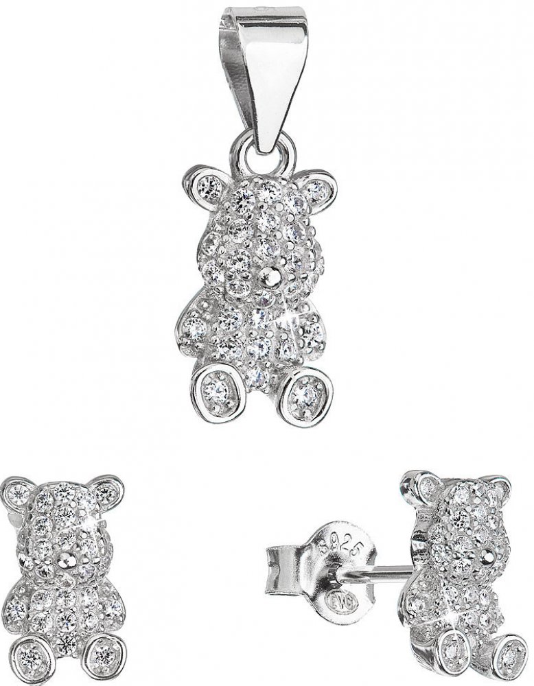 Pavona sada šperků se zirkony náušnice a přívěsek bílý medvídek 19029.1