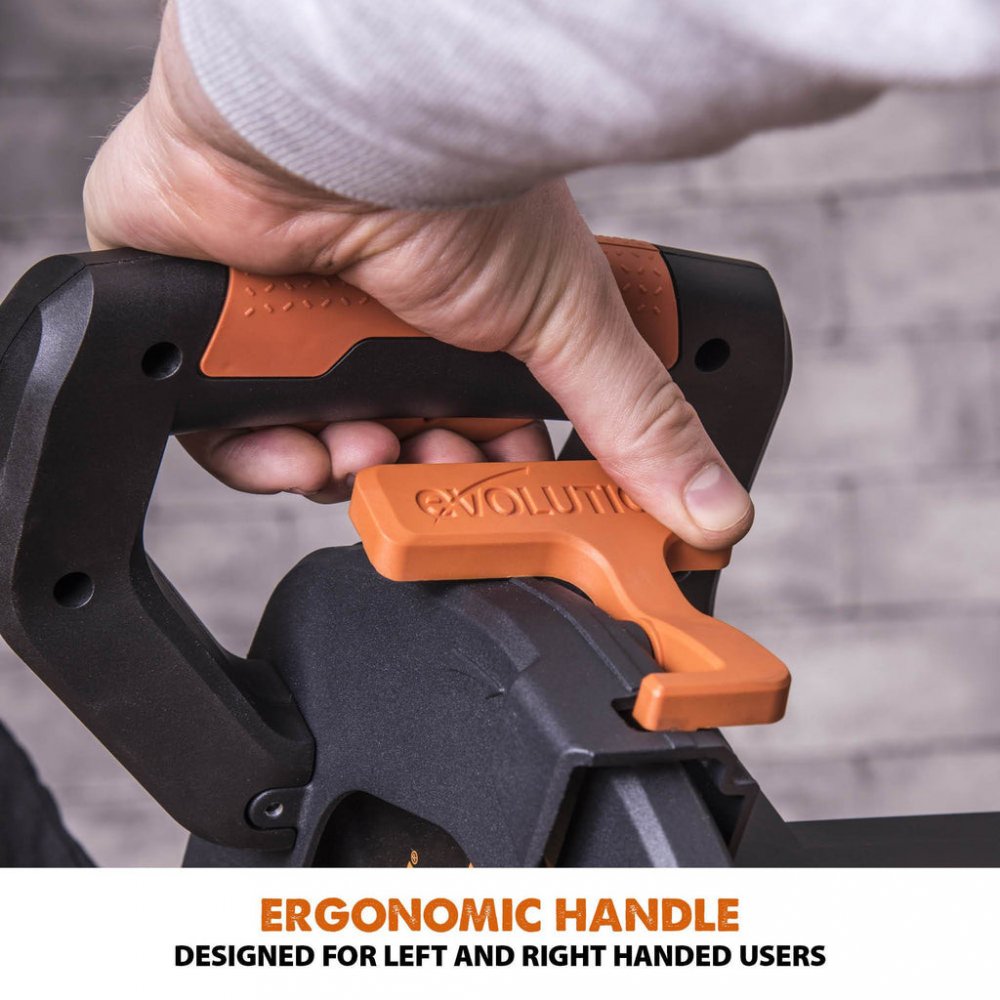 - Kompatibilní se stojanem na pokosovou pilu Evolution vám umožňuje snadno zaujmout kontrolu nad řezáním přesných opakovaných délek na širokých a dlouhých materiálech.