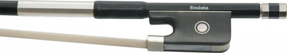 Kompozitní smyčec, kulatý, vyrobený z uhlíku, sklolaminátu a polymeru - černá barva, vyražený nápis "EVOLUTA", ebenová žabka, pařížské oko a třídílný šroub, vinutí stříbrné barvy. Ideální pro žáky a studenty, protože je snadno hratelný a nepodléhá vlivům počasí.