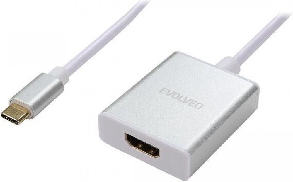 Evolveo adaptér, pomocí kterého je možné převádět 4k video z konektoru USB C do HDMI. Adaptér má kovové tělo zajišťující vyšší odolnost.