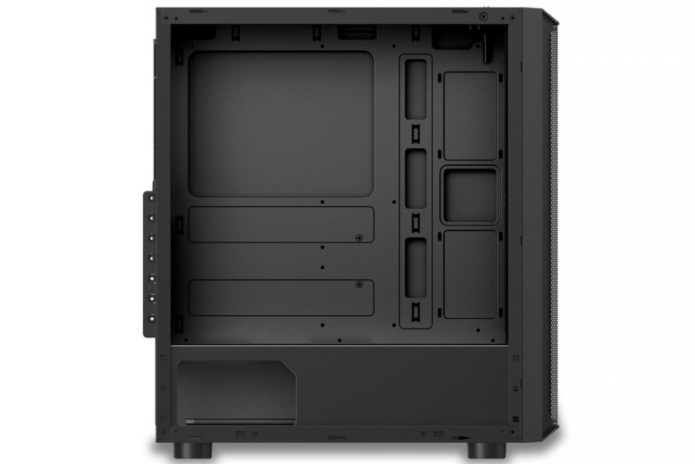 Herní ATX midi tower s instalovanými 4x RGB rainbow 120 mm ventilátory, které se ovládájí pomocí LED tlačítka na horní straně ovládacího panelu. Čelní mřížka přes celý přední kryt zajišťuje efektivní proudění vzduch. Levá strana skříně obsahuje bočnici z tvrzeného skla. Skříň je určená pro základní desky podporující platformu Intel i AMD. Mimo formátu ATX je kompatibilní i s formátem Micro ATXa Mini ITX. Napájecí zdroj se umísťuje do dolní části skříně. Spodní mřížka je osazena vysouvacím prachovým filtrem, horní prachový filter je uchycený magnety a je odnímatelný.