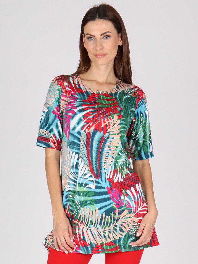 Dámská tunika Elina s moderním potiskem je perfektní na slunečné dny. Je vyrobena z viskozy příjemné na tělo a díky střihu i lichotí postavě.