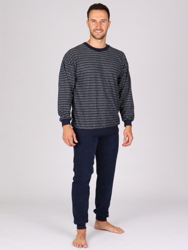 Evona P 1428 163 pánské pyžamo dlouhé froté tm.modré