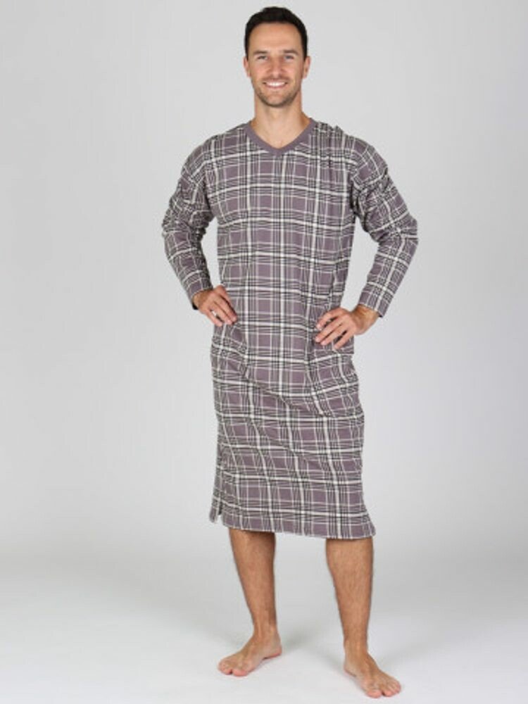 Pánskou noční košili FERENC si všichni páni zamilují. Dlouhý rukáv, délka pod kolena a příjemný materiál zajistí při spánku potřebné pohodlí. Noční košile skvěle poslouží i jako dárek.