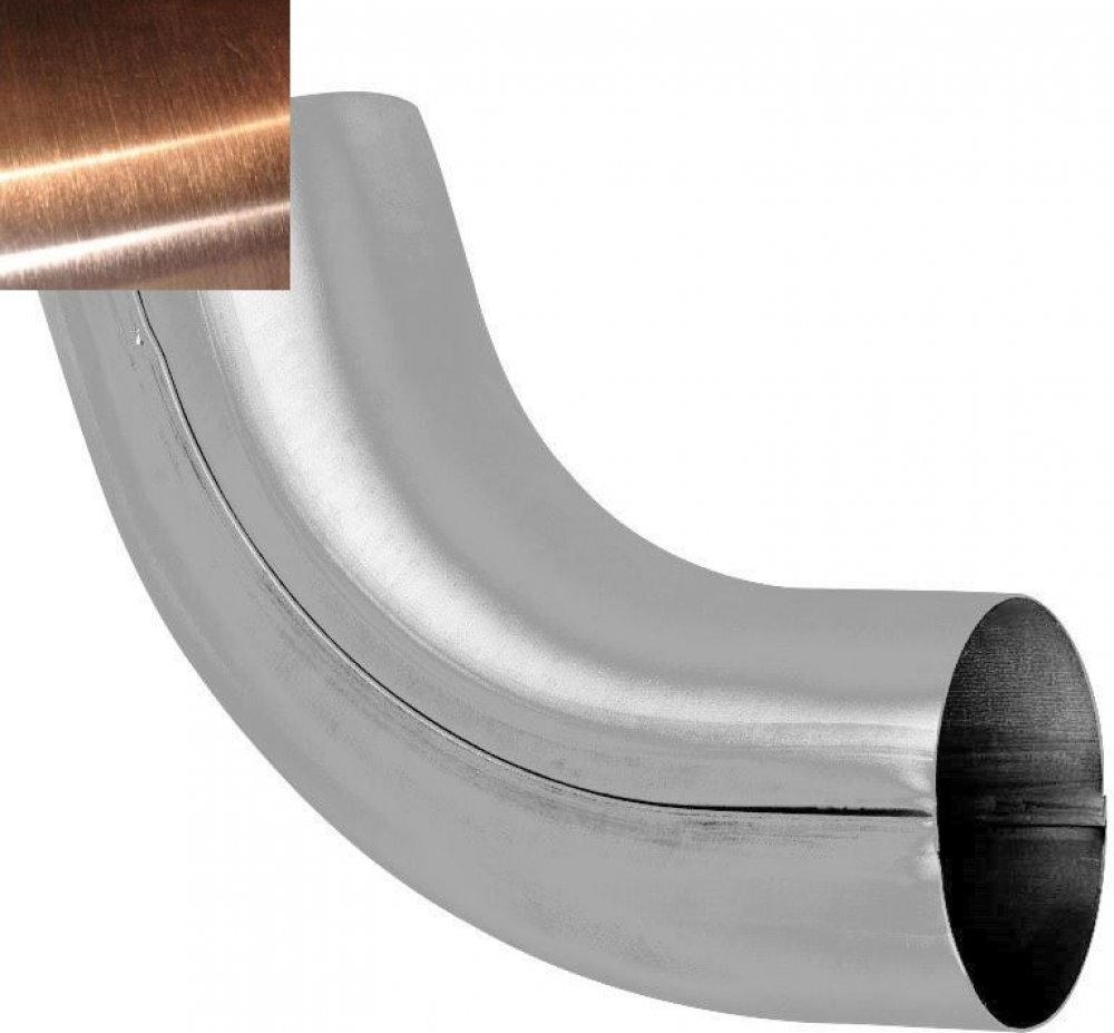 Svodové kulaté koleno s úhlem 70°, k zahnutí svodu o průměru 100 mm, materiál měď (Cu).