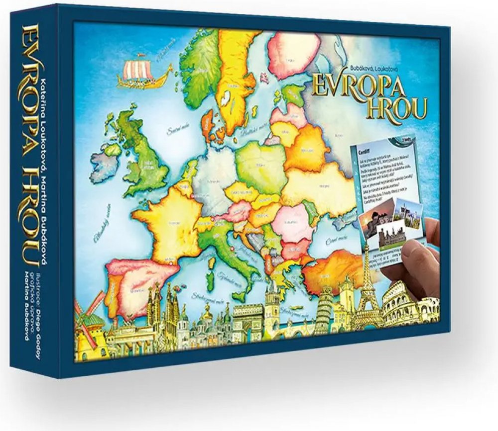 EVROPA HROU je moderní, didaktická společenská hra, díky které se každý zábavnou a nenásilnou formou naučí znát mapu Evropy. V průběhu hry poznáte zvyky a obyčeje jednotlivých evropských států, „navštívíte“ typické památky evropských měst, nebo si „prožijete“ Evropu v úkolech! Díky 580 otázkám a úkolům poznáte Evropu i její mapu skutečně důkladně!
