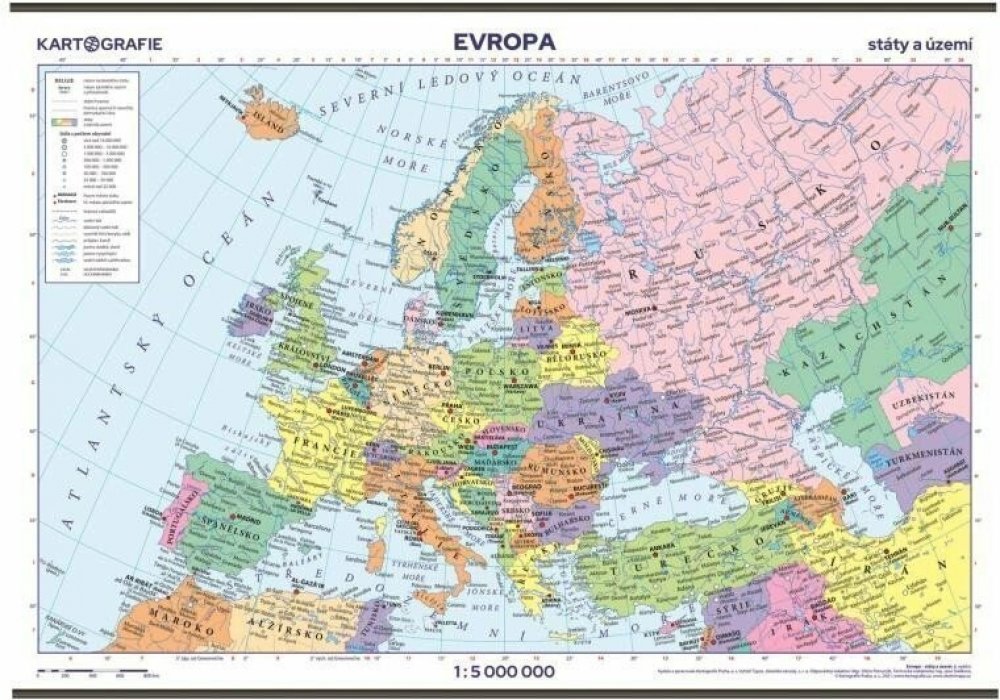 Evropa v měřítku 1 : 5 000 000 v politickém provedení