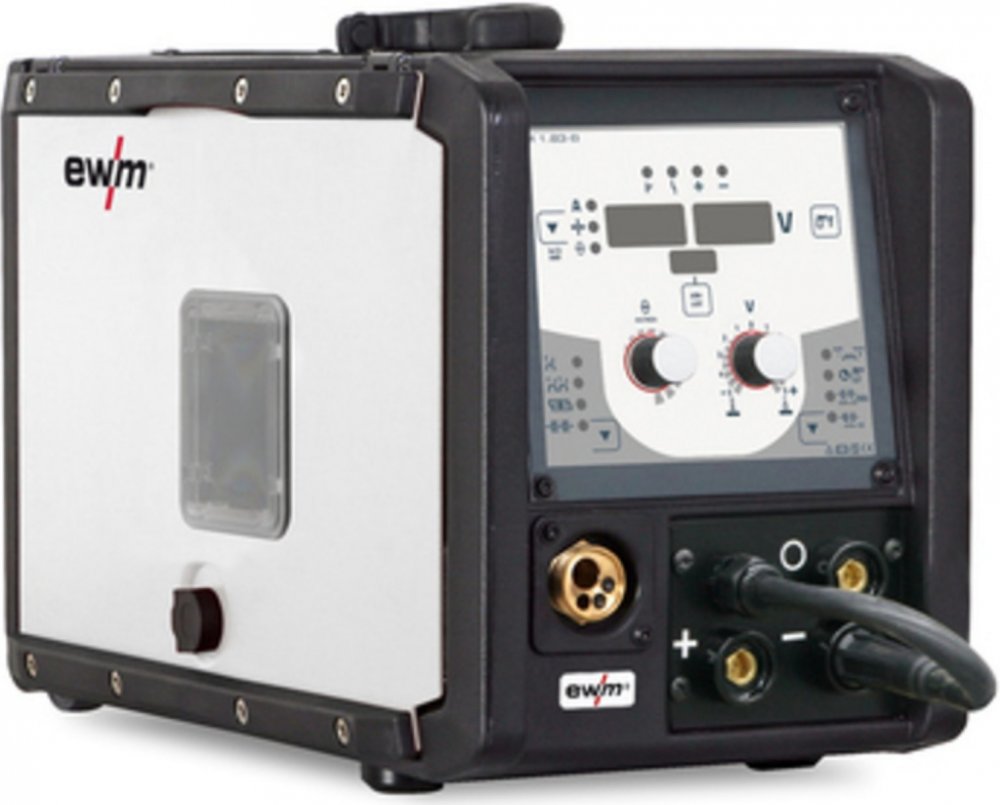 Samotná svářečka je neuvěřitelně nabitá svářecími funkcemi, pro ulehčení práce ale hlavně špičkový výsledek. Zejména má již v sobě charakteristiky pro sváření nejen oceli, ale i nerezi a hliníku, včetně jejich slitin. Integrovaný synergický režim s jednoknoflíkovým ovládáním pro velmi snadné nastavení svářecích parametrů. Lze nastavit ještě dynamiku svářecího oblouku, což tvoří účinek jako tlumivka. Dále disponuje vysokým napětím volnoběhu, což zaručuje nejlepší možné zapálení svářecího oblouku. K tomu všemu, jde ještě nastavit předfuk a dofuk plynu pro MIG sváření. Krásně tak lze ovlivnit svár od začátku až do konce. Samozřejmostí je 2T/4T. Funkce šetření spotřeby elektrické energie díky vysoké účinosti a řežimu StandBy je u výrobce EWM již zvykem. 4 kladkový pohon je nadstandartní vybavení, které je však u této svářečky použito a tím je posun drátu až předimenzovaný pro hladký běh. Obecně je tato CO2 svářečka silná ve všech směrech, což je však dobře a tvoří tak vše dohromady neskutečnou svářečku. Zmiňovat se o tom, že umí vařit i plněným drátem, snad už ani nemá cenu. Stejně jako ochrana proti přepětí či izolovaný prostor umístění drátu v svářečce.