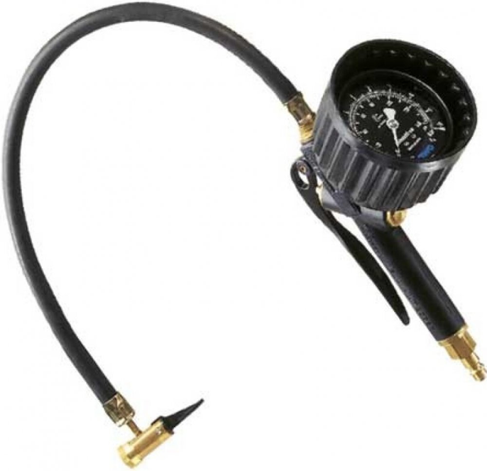 Manuálně ovládaný pneuhustič s odlehčeným hliníkovým tělem odolným mechanickému opotřebení a poškození, kvalitní díly testované podle směrnic EEC, jednoduché ovládání páčkou - stisknutí do půlky odpouštění, plný stisk huštění. Manometr o průměru 80 mm v ochranném krytu odolném proti poškození a se stíněním, rozsah manometru: 0 - 12 bar, dílky stupnice manometru po 0,1 bar, rotační hadička s plnícím ventilkem zajišťuje maximální usnadnění práce. Určené především pro čerpací stanice a řemeslnictví s vysokými nároky, pro huštění pneumatik osobních aut, motocyklů a jízdních kol. Délka hadičky 500 mm