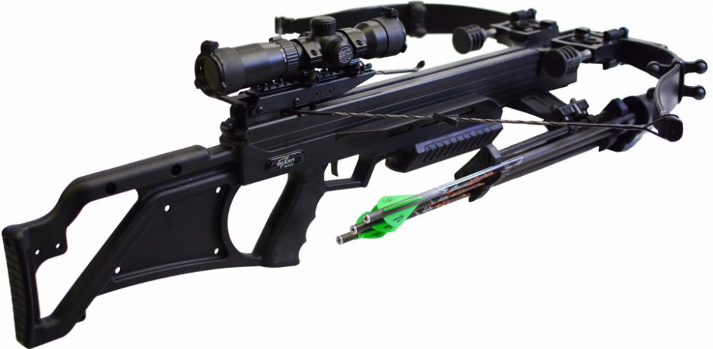 SpecifikaceRychlost: 385 FPSNátahová síla: 260 lbs.délka nátahu: 12.5"Hmotnost: 5,6 lbs.Celková délka: 34,0"Délka šípu: 18" nebo 20"Minimální hmotnost šípu: 350 grainůTyp pažby: BullpupPovrchová úprava: Camo Realtree Xtra