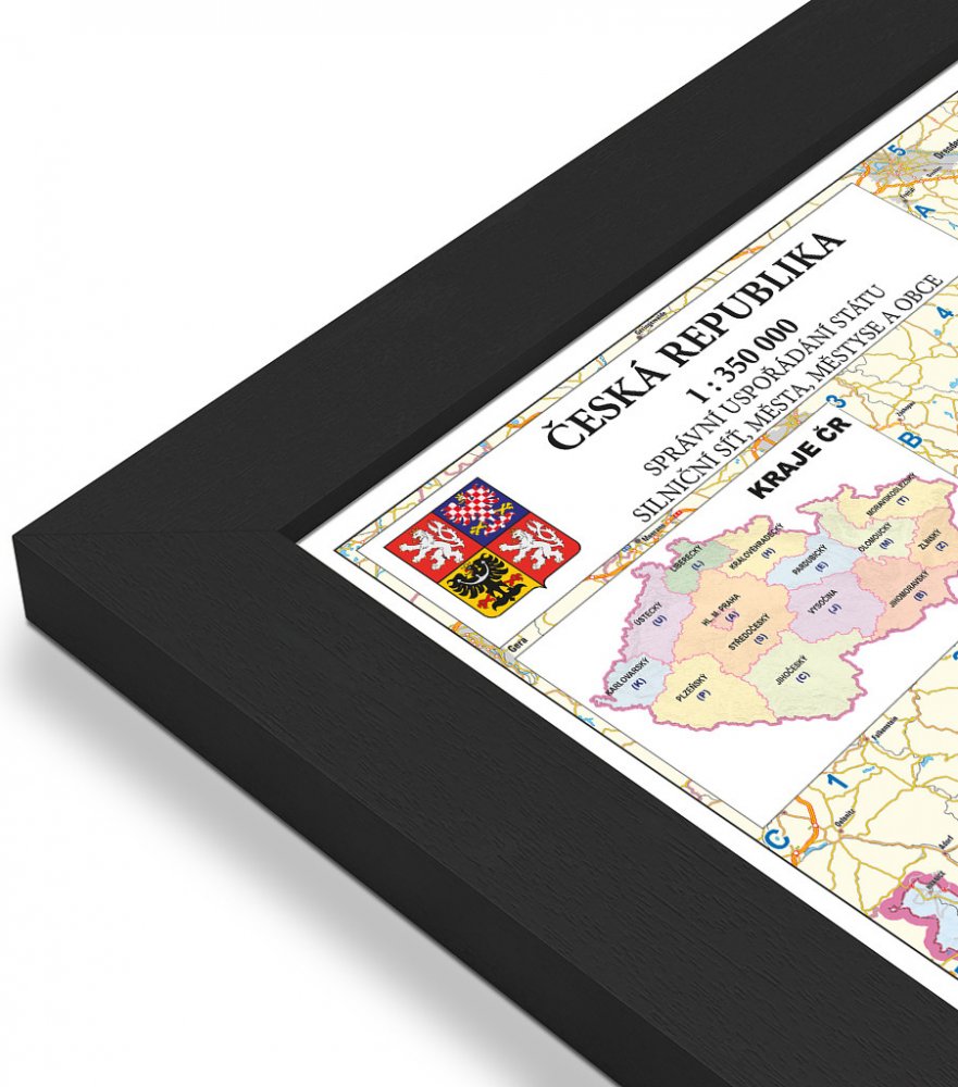 Excart Maps ČR - nástěnná administrativní mapa 135 x 90 cm Varianta: mapa v dřevěném rámu, Provedení: Pegi černý
