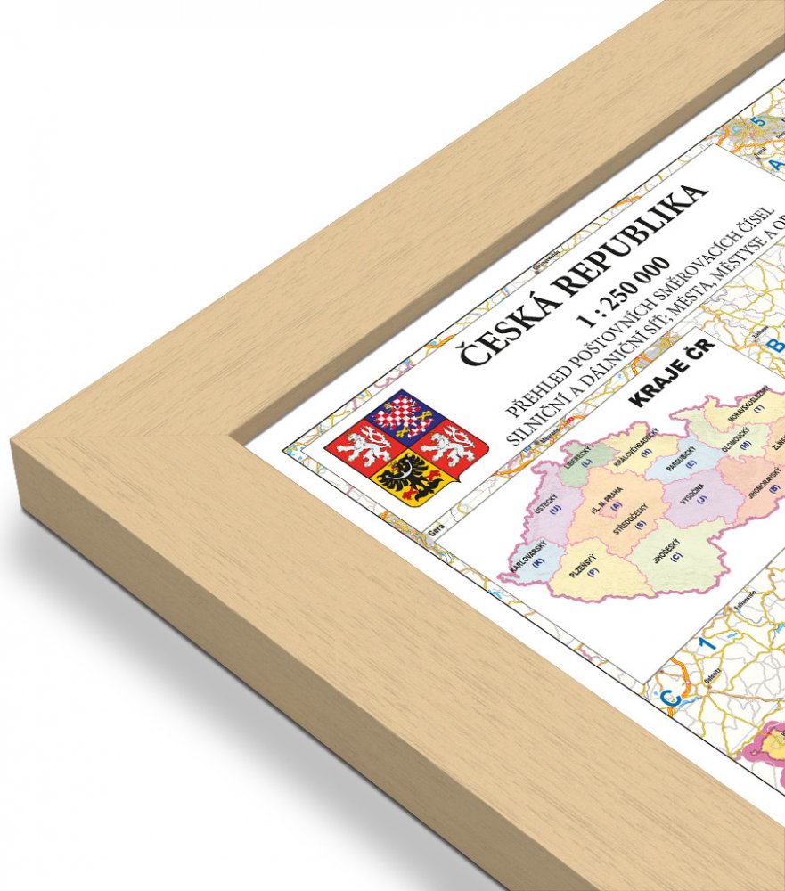 Excart Maps ČR - nástěnná mapa PSČ 135 x 90 cm Varianta: mapa v dřevěném rámu, Provedení: Pegi přírodní