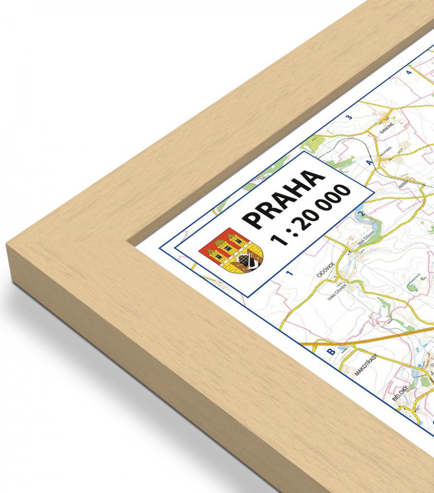 Excart Maps Praha - nástěnná mapa 183 x 138 cm Varianta: mapa v dřevěném rámu, Provedení: Pegi přírodní