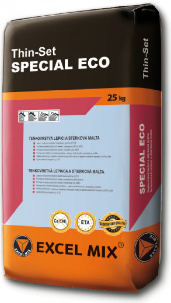 Cementový tmel pro zateplování fasád. Je přímo určen pro lepení tepelně izolačních materiálů - fasádního polystyrenu EPS (expandovaný), XPS (extrudovaný polystyren), izolačních desek z minerálních vláken MW s podélnou orientací vláken. Je komponentou ETICS pro lepení v systému EXCEL THERM s evropským technickým schválením (ETA), vydaným podle směrnice ETAG 004. POUŽITÍ Pro kontaktní zateplovací systémy Na běžné podklady – beton, omítky, pórobetony, cihly K lepení deskových izolantů – EPS, XPS, MW podélné vlákno Ke stěrkování - EPS, MW s podélným vláknem V kombinaci s armovací síťovinou pro renovace starých vypraskaných omítek nebo zdiva z pórobetonových tvárnic VÝHODY / VLASTNOSTI Kvalitní lepicí a stěrková hmota Výborný poměr kvality k ceně Přídržnost k podkladům i izolantu výrazně překračuje požadavky normy Zpracovatelnost cca 90 min. Vysoká difúzní schopnost μ ≤ 20 SPOTŘEBA / VYDATNOST: Podle typu podkladu a velikosti zubů stěrkycca 3,0 – 5,0 kg/m2