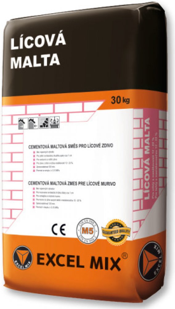 EXCEL MIX Zdící a spárovací malta 30kg - BÍLÁje suchá maltová směs, určená pro zdění a současné spárovaní pohledového a lícového zdiva ze silně savých cihel (příjem vody 12–22 %) ve vnitřním i venkovním prostředí. Vyhovuje normě EN 998-2 – Malty pro zdění.KLÍČOVÉ VLASTNOSTI Bez vápenných výkvětů V již probarvených odstínech – není nutné dodatečné spárování zdiva Zpracovatelnost 120 min. Pevnost v tlaku – třída M5 Pevnost ve smyku ≥ 0,15 MPa Dobrá zpracovatelnost POUŽITÍ Zdění na klasickou tloušťku spáry cca 1cm Pohledové a lícové zdivo, též nazývané režné zdivo, ze silně savých cihel SPOTŘEBA / VYDATNOST Na zdění a spárování: cca 25 kg suché směsi na 1 m2 zdiva tl. 30 cm Pouze na zdění: spotřeba 80–85 kg suché směsi na 1 m3 zdiva Pouze na spárování: cca 3,5–5,0 kg suché směsi na 1 m2 zdiva.