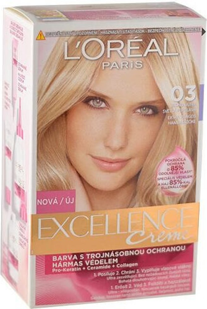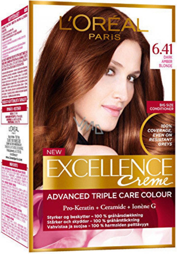 L'Oréal Paris Excellence Creme Triple Protection. Nechte své vlasy zazářit s jasnou a intenzivní barvou L'Oréal Paris Excellence Creme Triple Protection, která spolehlivě překryje i výrazné šediny. Pro-keratin a ceramidy spolu s aktivní složkou Ionène G chrání během procesu barvení vaše vlasy před poškozením. Závěrečná péče je pak obnovuje a posiluje. Získáte přirozeně vypadající a dlouhotrvající