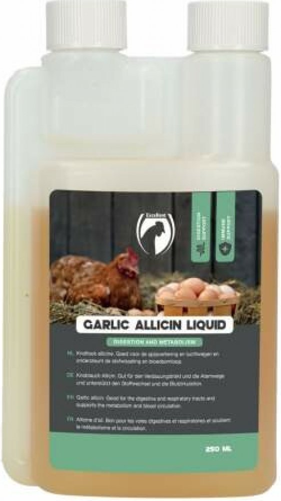 Podporuje imunitní systém a vitalituNapomáhá zdravému trávení a správné funkci střevPůsobí příznivě na dýchací cestyZlepšuje krevní oběhPřirozeně čistí a pečuje o pokožkuVytváří přirozenou pachovou clonu proti vnějším vlivůmObsahuje nejvyšší podíl přírodního alicinu v tekuté formě, jeho účinek je mnohonásobně silnější než běžný česnek. Vhodné pro papoušky, holuby, vodní ptactvo i drůbež.Dávkování:Prvních 7 dní: 5 ml na 1 litr vody denněUdržovací dávka: 2× týdně 5 ml na 1 litr vodyBalení: 250 ml