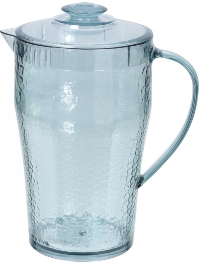 Modrý džbán se skleněným vzhledem je perfektní volbou pro lidi, kteří si cení elegance a pohodlí při každodenním používání! Je vyroben z lehkého a odolného plastu s efektem recyklovaného skla a je ideální pro každodenní použití i na párty. Rozměry: 13 cm x 25 cm