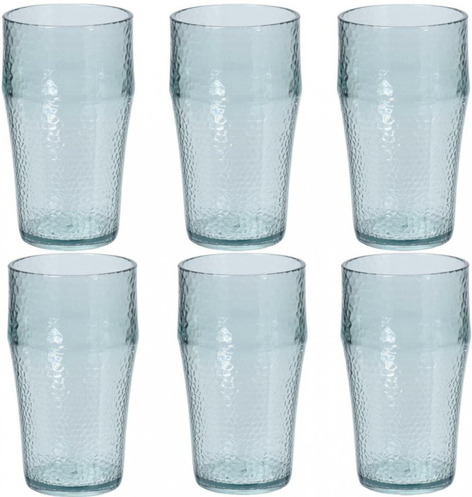 Sada 6 elegantních sklenic ideálních pro podávání studených nápojů. Vyrobeno z vysoce kvalitního plastu, který imituje recyklované sklo, spojují v sobě lehkost a odolnost. Ideální pro každodenní použití a speciální příležitosti. Lehký a odolný materiál PS, který je nerozbitný, bezpečný pro děti.