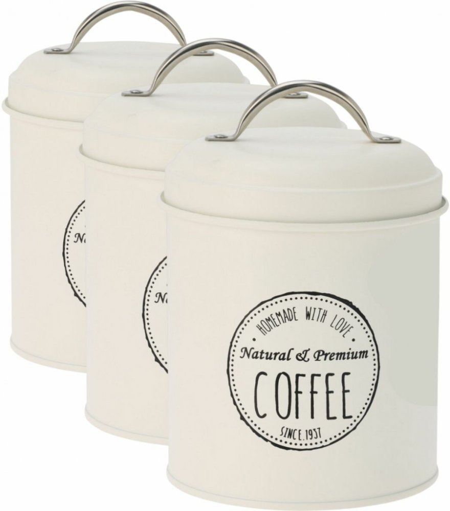 Sada plechových dóz na potraviny od značky Excellent Houseware je praktickým a stylovým doplňkem do každé kuchyně. Tři nádoby o rozměru 11 x 16 cm jsou ideální pro uložení čaje, kávy a cukru, přičemž každá dóza je opatřena originálním nápisem (TEA, COFFEE, SUGAR), který usnadní přehledné uspořádání. Jemná krémová barva s matnou povrchovou úpravou působí elegantně a zároveň se snadno kombinuje s dalším kuchyňským vybavením. Dózy jsou vyrobeny z kvalitního kovu s práškovým lakováním, které zajišťuje odolnost a dlouhou životnost. Díky dobře těsnicím víčkům zůstávají uskladněné suroviny chráněné před vlhkostí, prachem a ztrátou aroma. Každá nádoba je vybavena praktickým kovovým úchytem, jenž usnadňuje otevírání a zároveň podtrhuje retro vzhled celé sady. Hmotnost jedné dózy je 235 g. Hlavní výhody produktu: