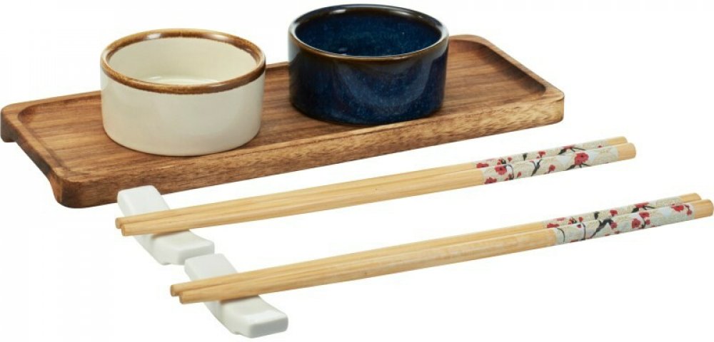 Suši sada – 9 dílůStylová sada na servírování suši kombinuje přírodní materiály a elegantní design. Obsahuje servírovací tác z akáciového dřeva, porcelánové misky a držák na hůlky doplněný bambusovými hůlkami. Ideální pro milovníky asijské kuchyně i jako originální dárek.Obsah sady:• Servírovací tác z akácie 24x22,5x40 cm• 2x Porcelánové misky průměr 7 cm• 2x Držák na hůlky• 4x Bambusové hůlkyPrak...