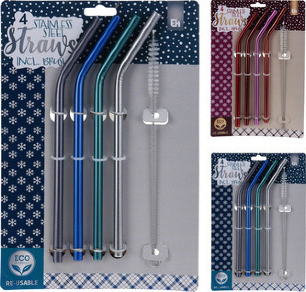 Kolekce Excellent Houseware představuje širokou škálu produktů, které vytvoří perfektní dekoraci pro každý stůl. Široký výběr kuchyňských výrobků, pečicích doplňků, skla nebo nádobí je stejně funkční a všestranný jako moderní. Popis produktu - Sada se skládá ze čtyř brček a čisticího kartáčku. - brčka do míchaných drinků nebo limonád vyrobená z nerezové oceli - z nerezových brček se neuvolňují žád...