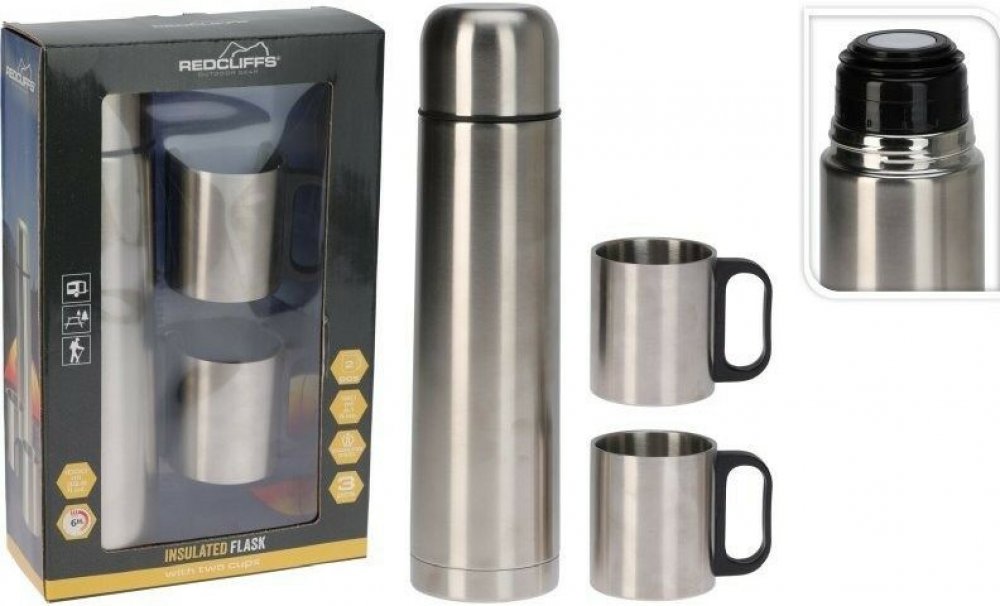 Udržujte nápoje teplé nebo studené po dlouhou dobu s touto praktickou termoskou se dvěma odpovídajícími šálky. Ideální na cesty, například na dlouhé cesty nebo pěší turistiku nebo kempování. Termoska má bezpečnostní uzávěr, díky kterému je vzduchotěsná a nepropustná. Kelímky na pití jsou dvoustěnné a stejně jako lahev vyrobeny z nerezové oceli. Kelímky mají velikost přibližně 6,5 x 7,5 cm a objem 180 ml. Termoska udrží nápoje teplé nebo studené až 6 hodin. Nevhodné do myčky nádobí. Dva dvoustěnné šálky Bezpečnostní krytka Vzduchotěsné a nepropustné Značka: Redcliffs Materiál: nerezová ocel Barva: Stříbrná Délka: 8 cm Šířka: 8 cm Výška: 32 cm Křehké: Ne Objem termosky: 1 litr S víkem: Ano Izolace: Ano