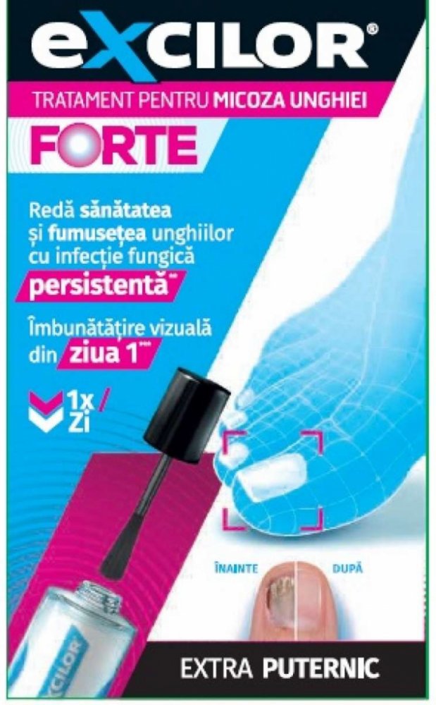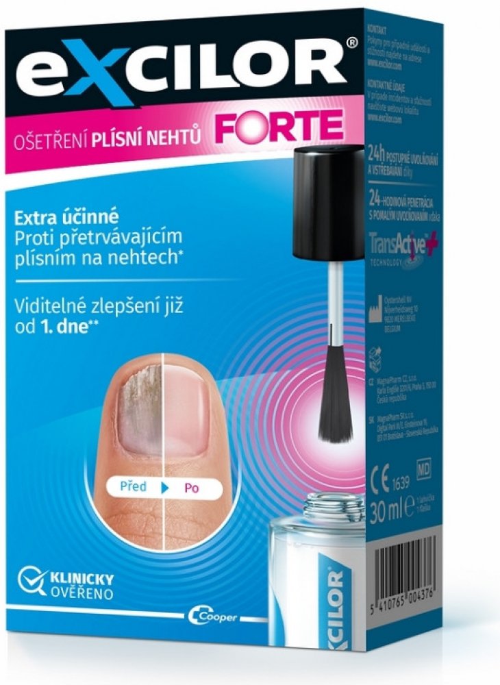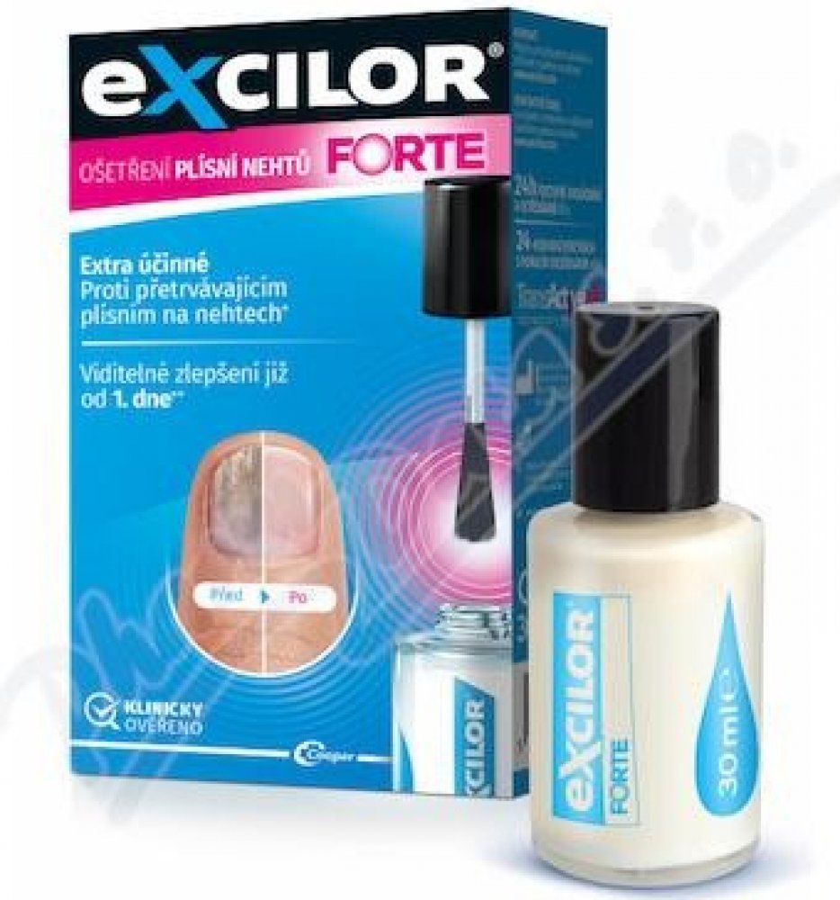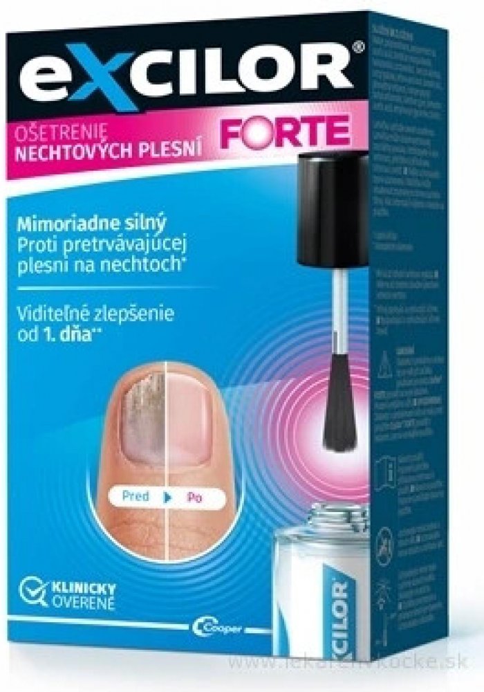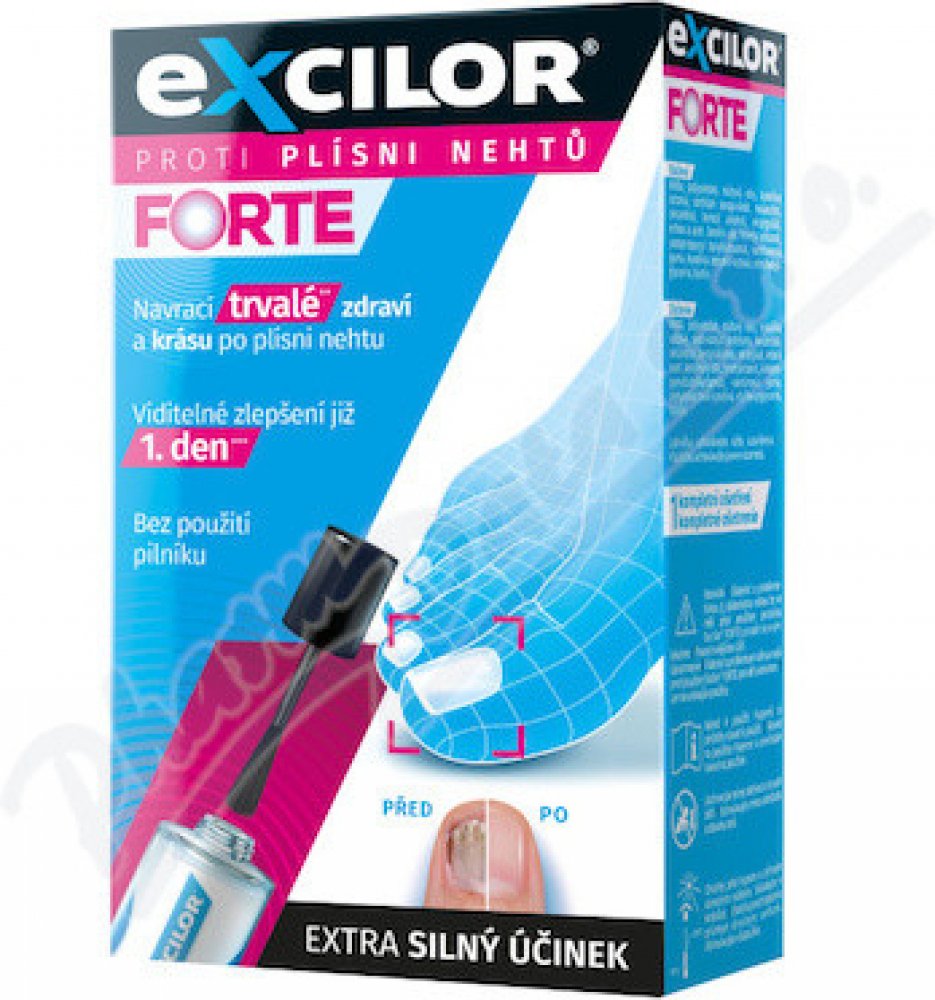 Excilor FORTE je účinné řešení proti plísňové infekci nehtů. Rychle proniká nehtem a působí tak v místě problému. Účinné složení nevytváří rezistence, lze ho používat opakovaně a je obohaceno o nehtové lipidy a biotin. Stačí 1 minuta denně bez pilování.