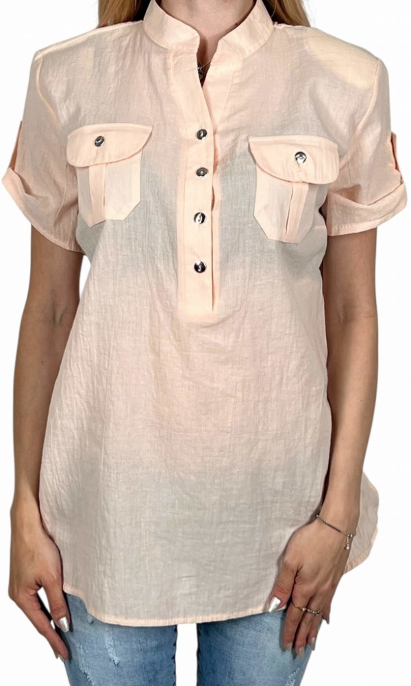 Tato elegantní dámská halenka s krátkým rukávem, lze snadno zkombinovat s jeany, sukní, nebo kalhoty.