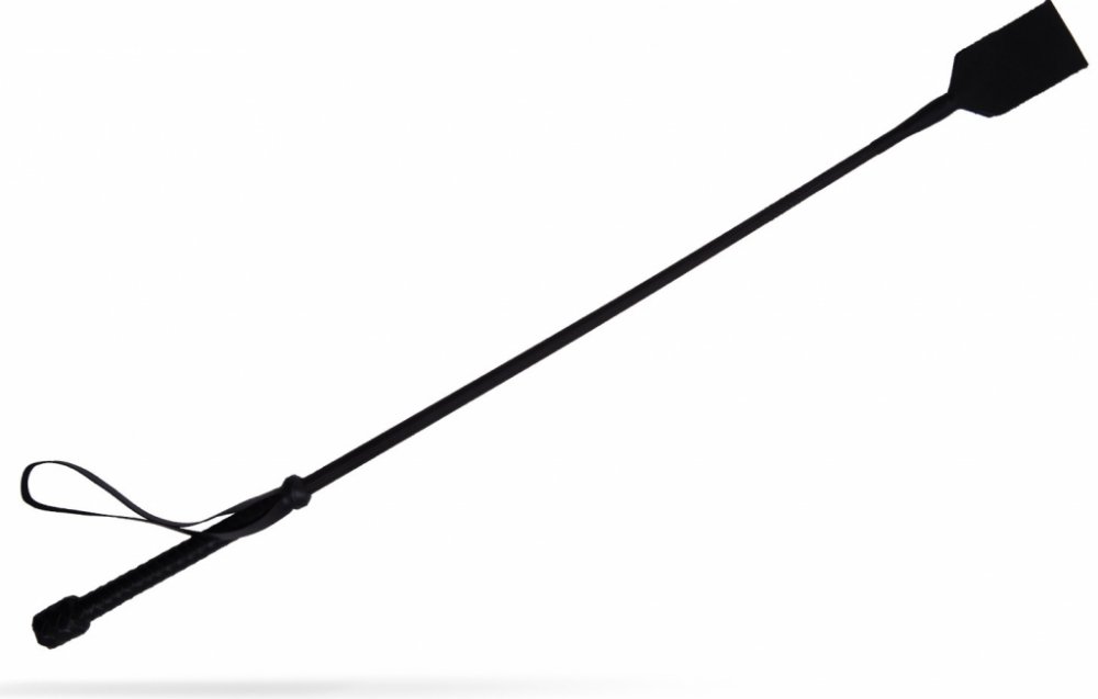 Jezdecký bičík s větší plácačkou v černém provedení a opletenou rukojetí. Bičík je pružný, je vhodný pro středně tvrdé výprasky i lehčí poplácávání. Díky svému zpracování a použitému materiálu jde o prvotřídní produkt. Součástí bičíku je poutko, které lze využít na ruku nebo na pověšení. Materiál: kůže, laminát, polyester. Celková délka: 71 cm. Délka rukojeti: 18 cm. Rozměr plácačky: 4,5x7,5 cm.-