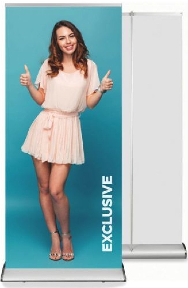 Stříbrný Roll up banner EXCLUSIVE 200x85 cm P-ORB850-EXCLUSIVE. Nesporný lídr mezi produkty prémiové třídy. Renomovaný na řadě trhů. Roll up s výjimečně stylovým vzhledem, kterému se říká „slza“. Jedná se o velmi odolný a stabilní systém, který slušně prezentuje jakýkoli výtisk. Doporučuje se mimořádně náročným zákazníkům.