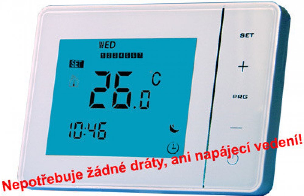 Upozornění: Bezdrátový termostat EXOE-RF je kompatibilní pouze ze systémem GSM EXEO.Prostorový Exeo RF TermostatExeo RF Termostat je plně programovatelný termostat pro GSM Exeo DESKTOP a DIN. Sloučením těchto dvou zařízení vzniká velmi komfortní systém pro regulaci topení s GSM ovládáním.Jelikož se jedná o ucelený systém, je ovládání pomocí GSM a tlačítky termostatu plně provázáno. To znamená, že změníte-li cokoli pomocí GSM (přepnutí režimu, jednorázové zvýšení teploty atd), je tato změna provedena i na termostatu a naopak, přepnete-li cokoli tlačítky termostatu, promítne se provedená změna do GSM. S tímto řešením se nemusíte obávat, že zapomenete termostat uvézt do "nějakého režimu připravenosti" a pak si na dálku nezatopíte jako je tomu u některých jiných řešení. Naopak zapomenete-li před odjezdem z objektu vypnout topení, či snížit teplotu, můžete tak učinit na dálku pomocí SMS. Součástí je montážní panýlek pro montáž termostatu na zeď a stojánek pro variantu přenosného termostatu. Podporuje Android a iOS aplikaci.Termostat disponuje následujícími režimy a možnostmiRežim programRežim manualRežim partyTopení vypnuto - nezámrzný režim aktivován (možno vypnout)možnost okamžité změny teploty místně nebo přes SMSzobrazení nastavené a okamžité teploty na podsvětleném LCD displeji a přes SMSdálkový zásah do programu termostatu vracíte-li se dřívedálkové zatopení před návratem z dovolenéaž 8 různých programů (časových zón) pro každý den v týdnuzámek maximální nastavené teploty například pro apartmány apod.automatické zaslání SMS v případě poklesu či překročení teplotypočítadlo natopených hodin kotlesnadná montáž díky velmi variabilnímu držáku na zeďesteticky vyladěný stojánek pro řešení přenosného termostatuUnikátní řešení instalaceKoncepce umožňuje připojit ovládaný kotel jak do GSM Exeo, tak do Exeo RF Termostatu. Toto řešení zjednodušuje instalaci. K ovládání kotle nepotřebujete žádné vedení, kotel můžete zapojit do GSM Exeo, to tvoří přijímací jednotku pro bezdrátový termostat, podobně jako tomu je u běžných bezdrátových termostatů a Exeo RF Termostat můžete mít tam, kde ho právě mít chcete. Zajímavé je i řešení, nahradit jen váš současný termostat Exeo Termostatem, kotel ovládat jím, vedením, které již máte. GSM Exeo pak jen zapojíte do libovolné zásuvky v domě. toto řešení je zajímavé právě tím, že Exeo termostat nepotřebuje pro svoji funkci žádné další napájení (narozdíl od jiných GSM termostatů), takže nezavádíte žádné dráty od napájecího zdroje apod.Technické údaje:rozsah regulace teploty 1-35°Cregulace teploty po 0.5°Chystereze regulace 0.5°Cnapájení baterie "AA" (tužková) 2ksspínací prvek 24V 5Anízká spotřeba, dlouhá životnost bateriípři výměně baterií jsou veškerá data nastavení uchovánaSoučástí dodávky je:Exeo RF TermostatStojánek a montážní panýlekAlkalická Baterie "AA" 2ks