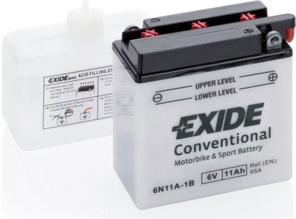 Exide Bike Conventional 6V 11Ah 95A 6N11A-1B jsou určeny pro základní modely a starší vozidla se základními potřebami napájení. Jsou také ideální pro malé sekačky a zahradní techniku.