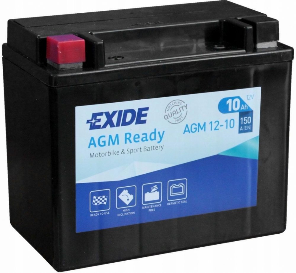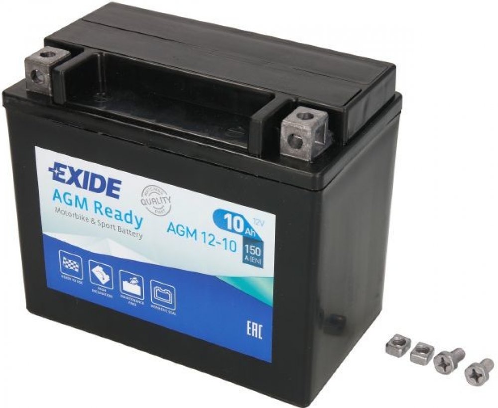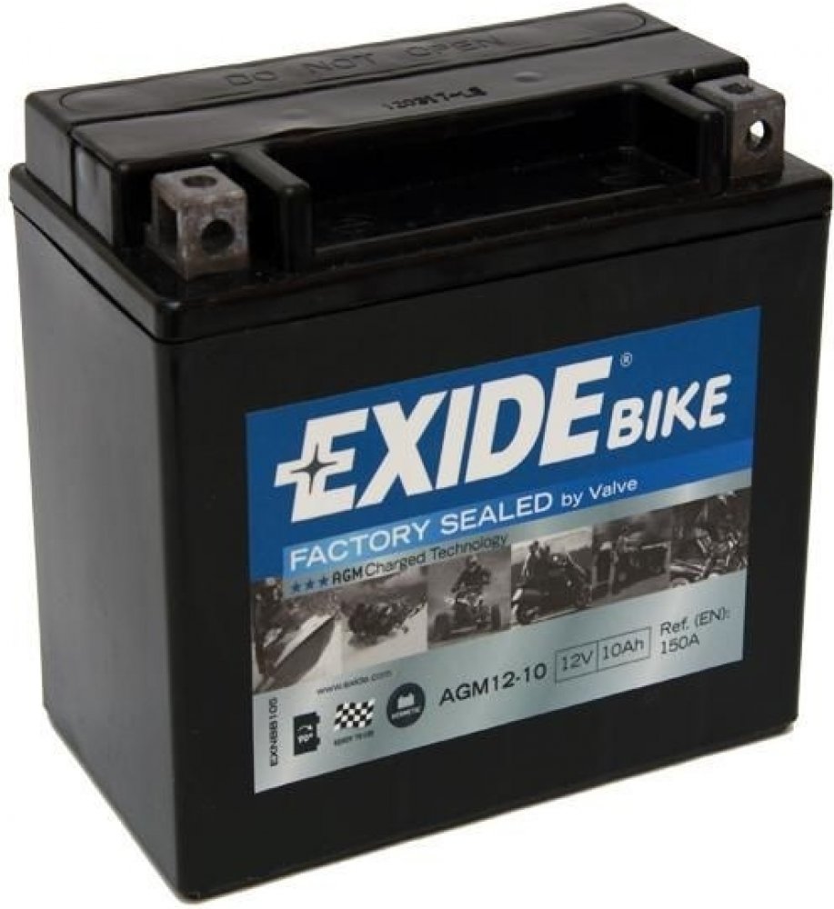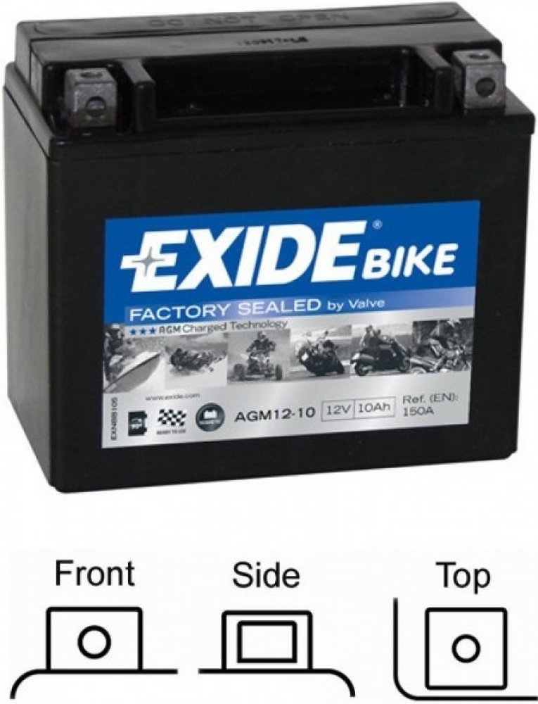 Motobaterie EXIDE BIKE Factory Sealed AGM12-10 (12V, 10Ah, 150A) - MOTOBATERIE EXIDE BIKE - FACTORY SEALED