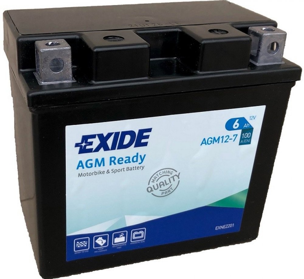 Exide BIKE AGM Ready, to jsou baterie, které vynikají velmi vysokým výkonem a maximální odolností vůči vibracím a hlubokému vybití. Díky uzavření již v továrně je možné je použít v jakékoli poloze.