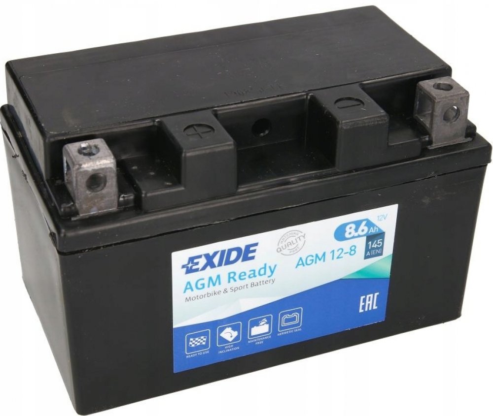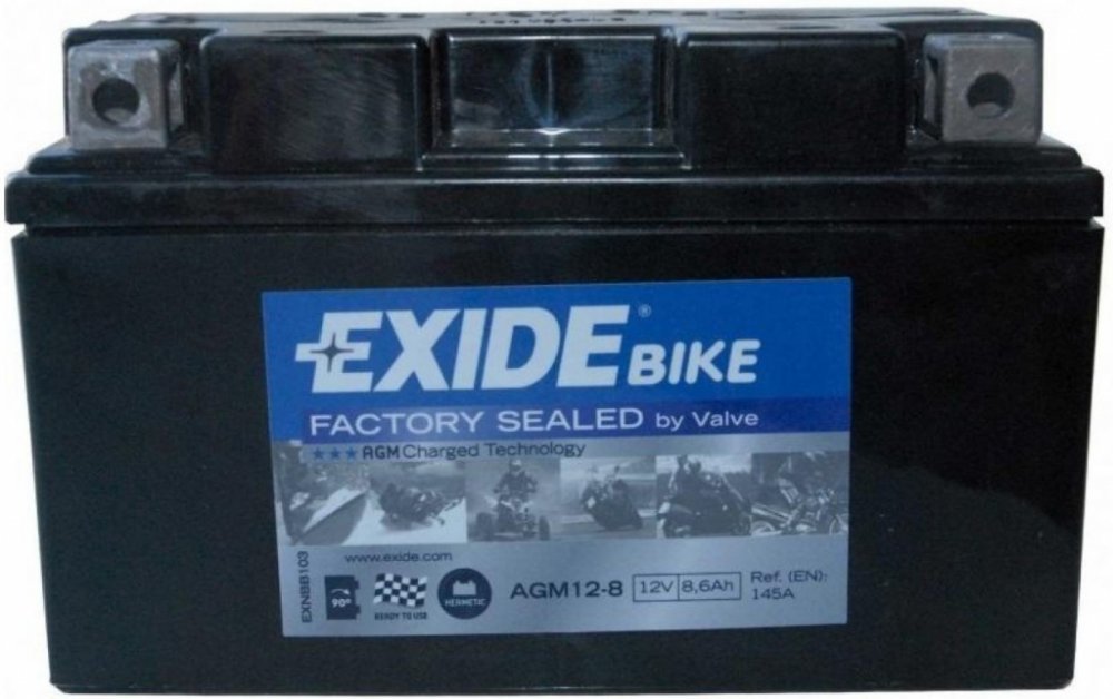 MOTOBATERIE EXIDE AGM12-8 BIKE GEL - aktivována ve výrobě (bezúdržbová) Výkon: 12V, 8,6Ah Rozměry: Délka:150 mm Šířka: 87mm Výška: 93 mm