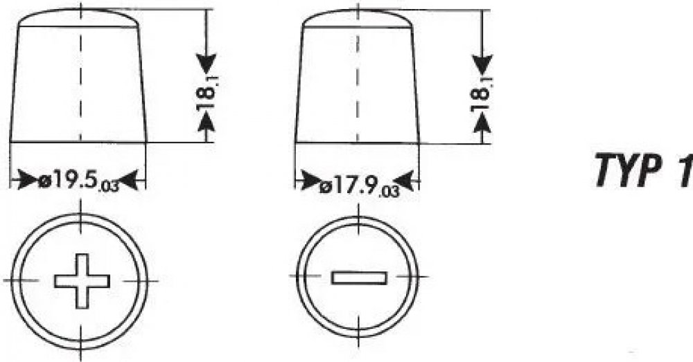 * typ kontaktů:1(+ průměr 19,5mm; - průměr 17,9mm)