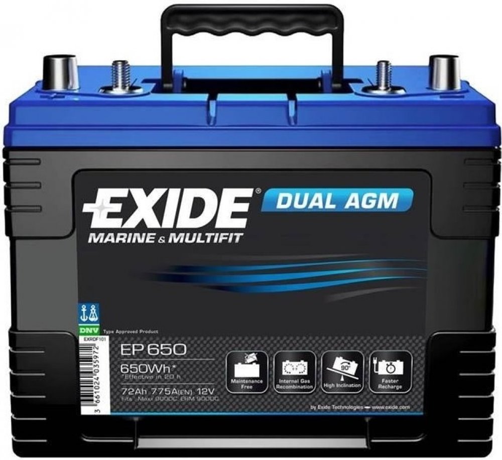 Exide DUAL AGM 12V 240Ah 1200A EP2100 navrženo pro dodávání energie pro nejpopulárnější obytné přívěsy a karavany. Jejich konstrukce zajišťuje vysokou míru flexibility instalace (v kabině, v poloze na bok, až 30% úspora místa), výhody pro obsluhu (absolutní bezúdržbovost, vhodné pro dlouhá období bez použití, až 50% úspora času při dobíjení) a robustnosti (odolnost vůči vibracím, náklonu, vylití a...