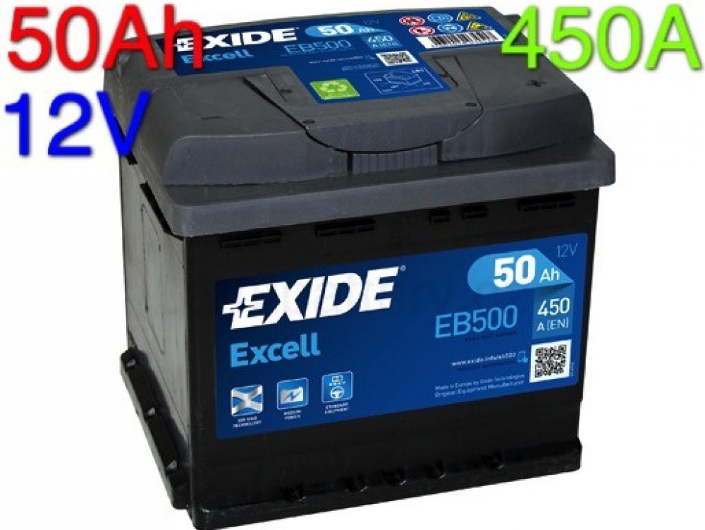 Exide Excell 12V 50Ah 450A EB500