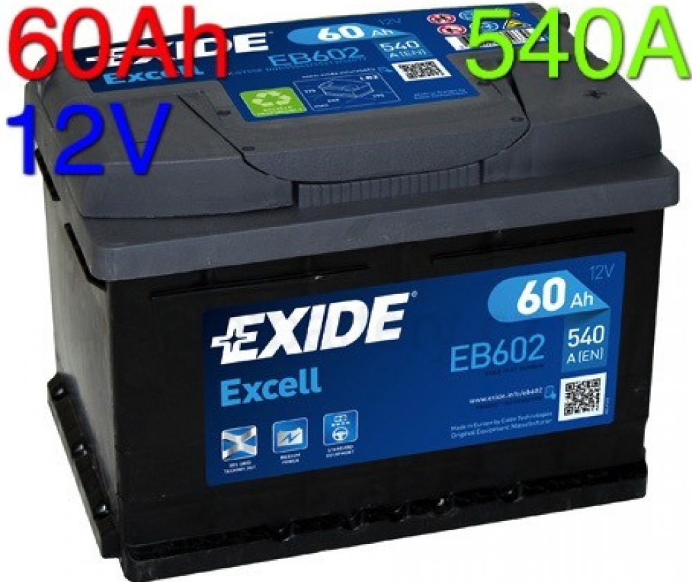 Exide Excell 12V 60Ah 540A EB602