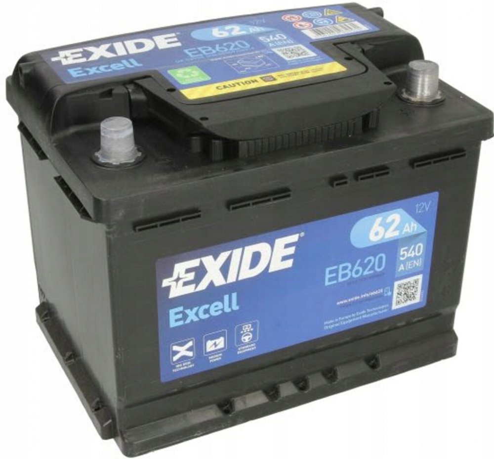 12 V 540 A Exide 15.8 kg (+) pól vpravo 62 Ah Ca/Ca B13 190 mm 175 mm 242 mm EB620 EN pro osobní vozy vhodné pro domácí montáž (DIY) s horními póly (top post)