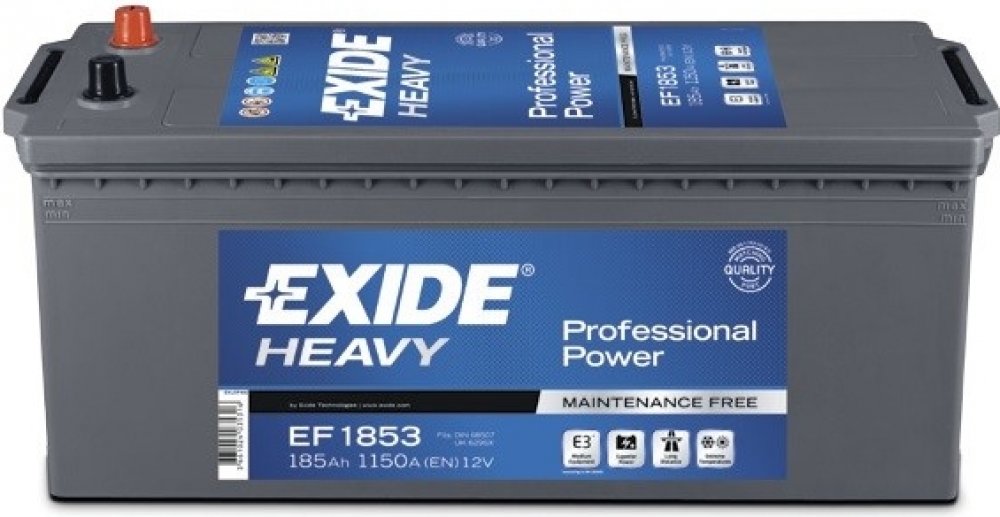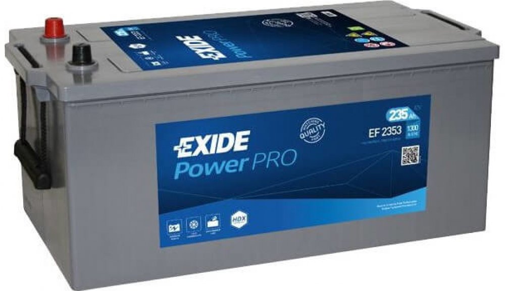 Exide PowerPRO 12V 235Ah 1450A EF2353 -působivý výkon při každém startování. Má prodlouženou skladovatelnost před instalací, nabízí manipulaci odolnou vůči jiskrám a vytečení a je naprosto bezúdržbová, po celou dobu životnosti.